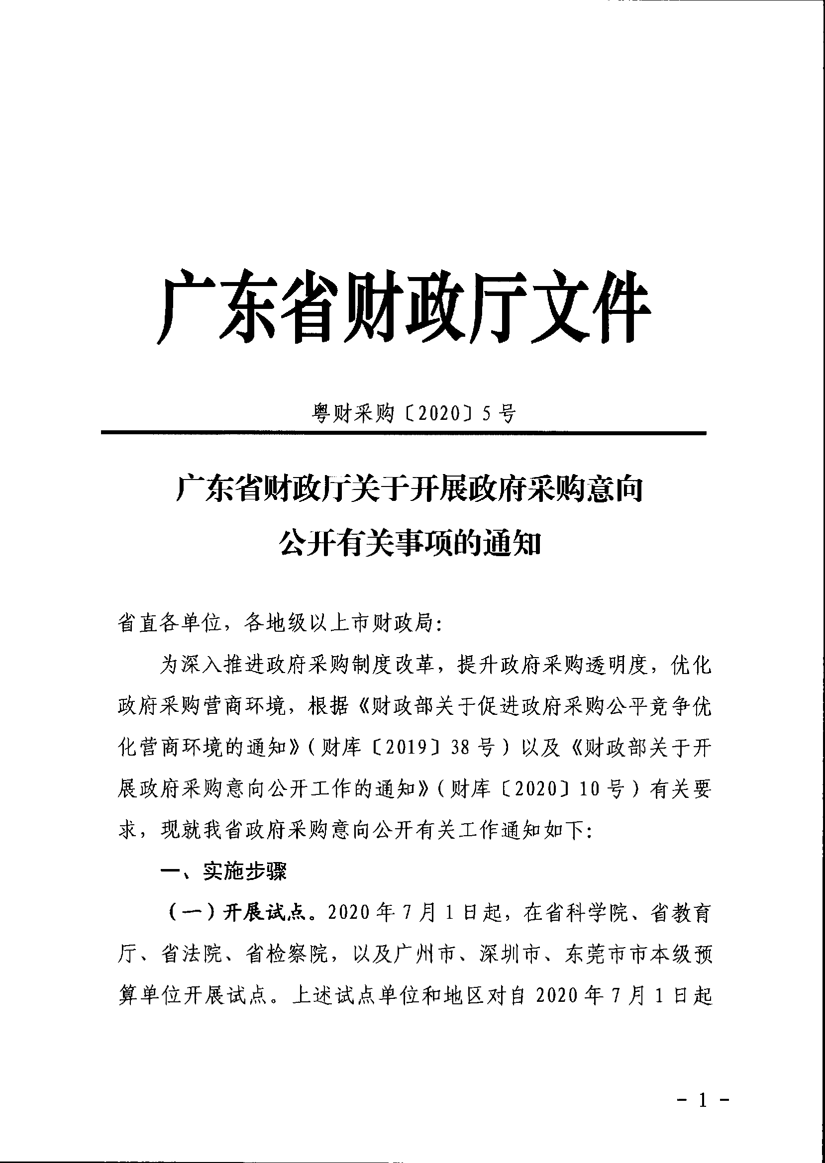 為深入推進政府采購制度改革,提升政府采購?fù)该鞫?,?yōu)化政府采購營商環(huán)境,現(xiàn)將《廣東省財政廳關(guān)于開展政府采購意向公開有關(guān)事項的通知》(粵財采購〔2020〕5號)轉(zhuǎn)發(fā)給你們,同時結(jié)合我市實際提出以下要求,請一并遵照執(zhí)行: